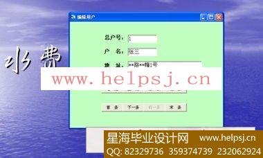 摘 要 水费管理系统是典型的管理信息系统(MIS),其开发主要包括后台数据库的建立和维护以及前端应用程序的开发两个方面。对于前者要求建立起数据一致性和完整性强、数据安全性好的库。而对于后者则要求应用程序功能完备,易使用等特点。 经过分析,我们使用 MICROSOFT公司的 VISUAL BASIC开发工具,利用其提供的各种面向对象的开发工具,尤其是数据窗口这一能方便而简洁操纵数据库的智能化对象,首先在短时间内建立系统应用原型,然后,对初始原型系统进行需求迭代,不断修正和改进,直到形成用户满意的可行系统。 本系统的主要功能包括:用户管理、收费管理、打印服务、多帐户管理等功能。( 星海毕业设计 www.helpsj.cn QQ:82329736) 关键字 水费 水费管理 管理信息系统 MIS Visual Basic